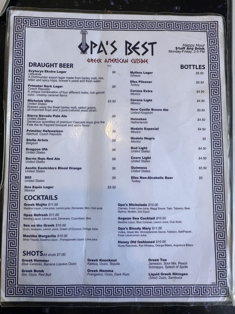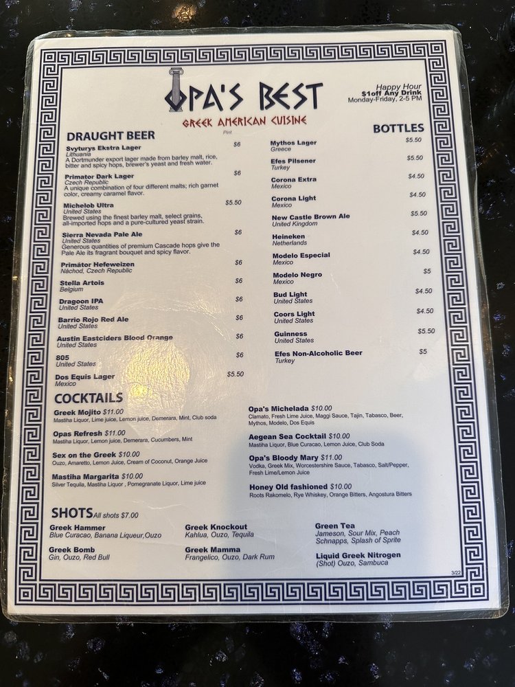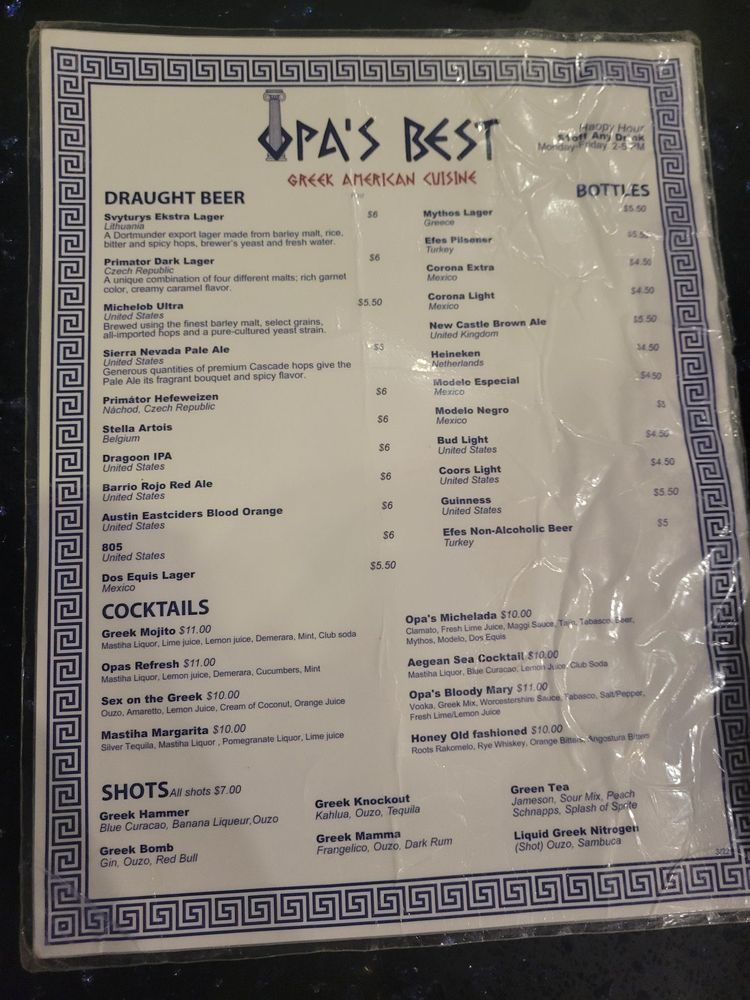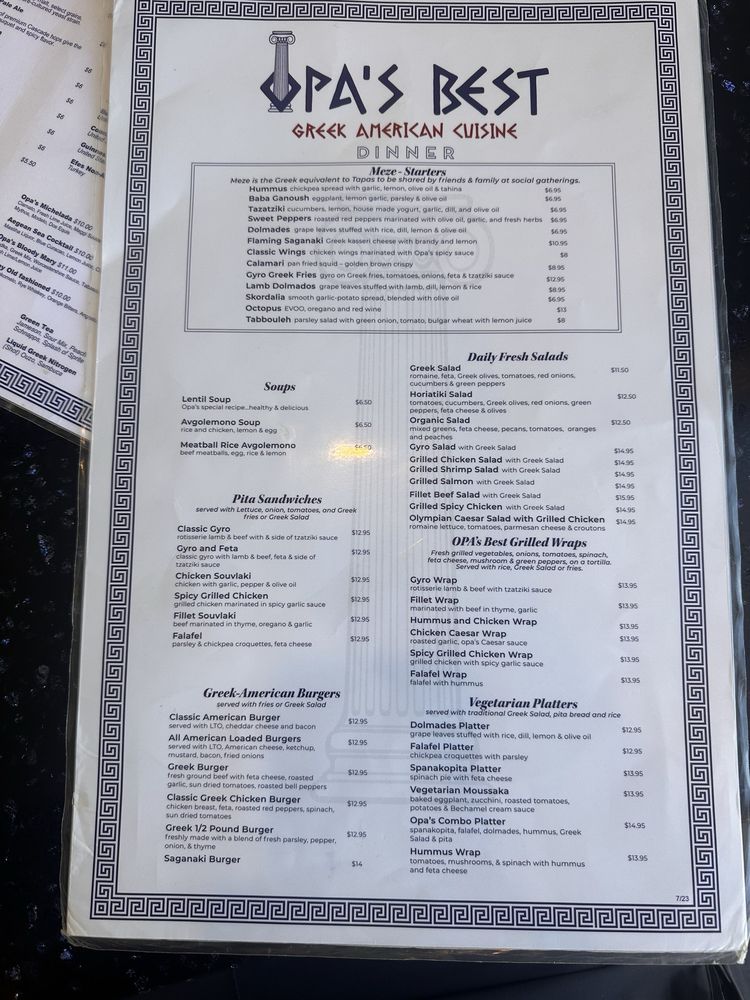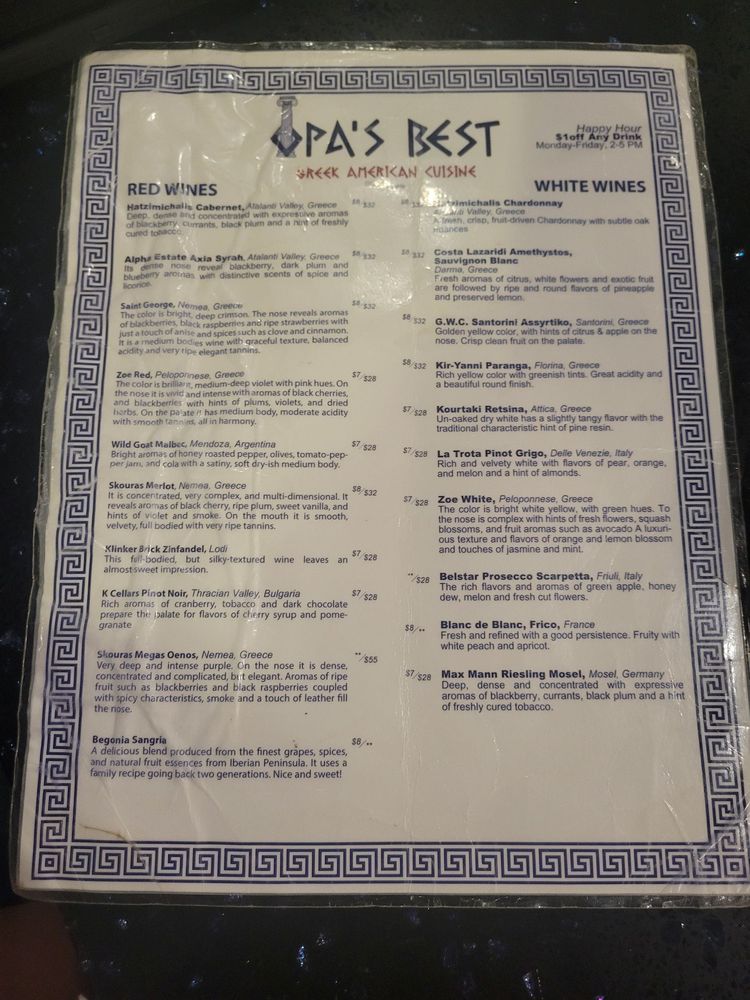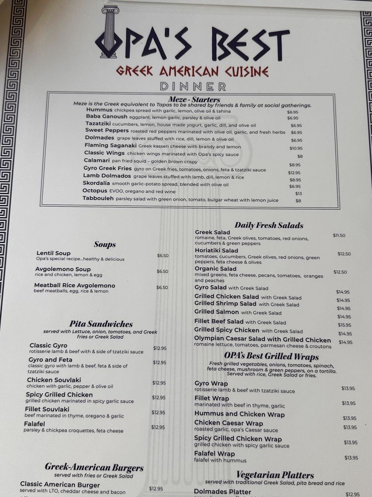 Opa’s Best Greek American Cuisine Menu (Update 2025)